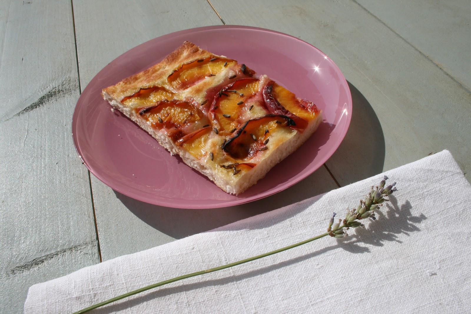 Focaccia pesche e lavanda