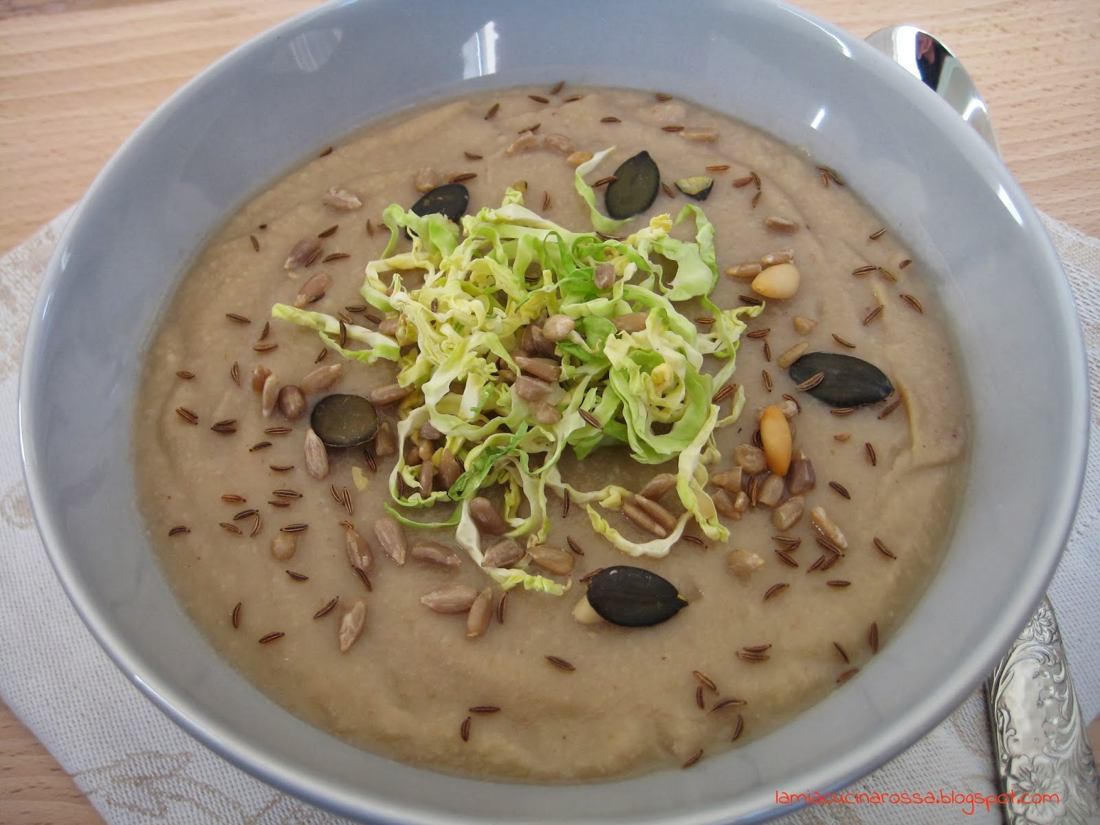 uh ma che golosa questa crema! amo incondizionatamente tutti gli ingredienti che hai usato..le castagne sì, e forse è anche normale, ma pure di cavolini..me ne farei fuori in quantità illecite! mi piace anche la cascata di semini sopra 🙂